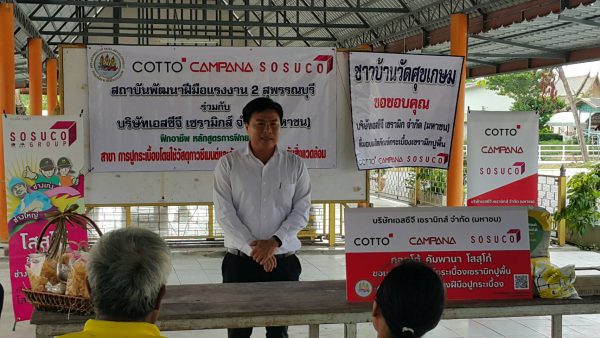 ที่สุพรรณบุรี บริษัทเอสซีจี เซรามิกส์ จำกัด (มหาชน) ผู้ผลิตและจำหน่ายกระเบื้องชั้นนำของไทยภายใต้แบรนด์ “คอตโต้” (COTTO) โสสุโก้ (SOSUCO) และ คัมพานา (CAMPANA) มอบผลิตภัณฑ์กระเบื้องเซรามิคปูพื้นและบุผนังเพื่อใช้ในโครงการฝึกพัฒนาฝีมือแรงงาน