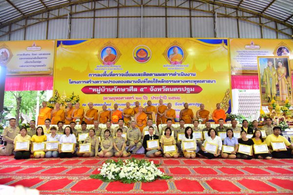 คณะกรรมการขับเคลื่อนโครงการสร้างความปรองดองสมานฉันท์โดยใช้หลักธรรมทางพระพุทธศาสนา “หมู่บ้านรักษาศีล 5”ตรวจติดตามผลการดำเนินโครงการที่จังหวัดนครปฐม