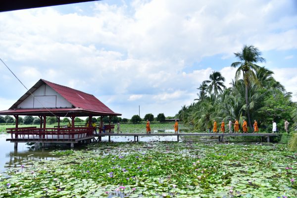 จากนั้นเดินทางไปยังวัดสุวรรณนาราม อำเภอพุทธมณฑล รับฟังบรรยายสรุปผลการดำเนินโครงการ จากนั้นชมนาบัวลุงแจ่ม และการดำเนินโครงการ กิจกรรมที่หมู่บ้านศาลาดิน ซึ่งบ้านศาลาดินแห่งนี้ มีการทำกลุ่มออมทรัพย์ กลุ่มอาชีพแม่บ้านเกษตรแปรรูป กองทุนหมู่บ้านให้เงินยืมไปประกอบอาชีพ กลุ่มปุ๋ยอินทรีย์ กองทุนแม่ของแผ่นดิน ร้านค้าชุมชน แหล่งท่องเที่ยวเชิงเกษตร และหมู่บ้านเศรษฐกิจพอเพียง