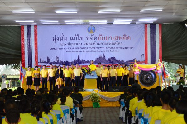 ศูนย์อำนวยการป้องกันและปราบปรามยาเสพติดจังหวัดนครปฐม ได้จัดกิจกรรมรณรงค์ประชาสัมพันธ์ เนื่องในวันต่อต้านยาเสพติดโลก ประจำปี 2562 ภายใต้กรอบแนวคิดและคำขวัญ “มุ่งมั่นแก้ไขขจัดภัยยาเสพติด” 26 มิถุนายน วันต่อต้านยาเสพติดโลกโดยมีวัตถุประสงค์ เพื่อให้หมู่บ้าน/ชุมชน สถานศึกษา องค์กรเยาวชน องค์กรศาสนา สถานประกอบการ หน่วยงานภาคีที่เกี่ยวข้องทั้งภาครัฐและภาคเอกชนในพื้นที่ได้รับรู้และเข้าใจถึงโทษพิษภัยจากยาเสพติดสามารถป้องกันตนเอง ครอบครัวสังคม ตลอดจนประเทศชาติให้ปลอดภัย และร่วมแสดงสัญลักษณ์โดยการสวมเสื้อสีเหลือง เพื่อรวมพลังต่อต้านยาเสพติด ตลอดจนให้ทุกภาคส่วนได้ตระหนักถึงภัยจากยาเสพติด เฝ้าระวัง และเข้ามามีส่วนร่วมในการป้องกันและแก้ไขปัญหายาเสพติดอย่างจริงจังและต่อเนื่อง