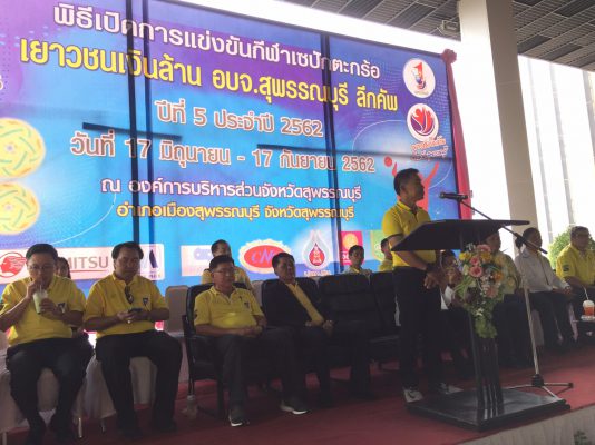 วันนี้(3 ก.ค.62)ที่ สำนักงานองค์การบริหารส่วนจังหวัดสุพรรณบุรี อำเภอเมืองสุพรรณบุรี นายบุญชู จันทร์สุวรรณ นายกองค์การบริหารส่วนจังหวัดสุพรรณบุรี เป็นประธานเปิดโครงการแข่งขันกีฬาเซปัคตะกร้อเยาวชนเงินล้าน อบจ.สุพรรณบุรี ลีกคัพ ปีที่ 5 ประจำปี 2562 พร้อมกล่าวว่า องค์การบริหารส่วนจังหวัดสุพรรณบุรี ตระหนักและมุ่งมั่นที่จะส่งเสริมนักกีฬาเยาวชนของจังหวัดสุพรรณบุรี ให้ก้าวสู่ความเป็นเลิศ และก้าวไปสู่ในระดับอาชีพ ซึ่งจะต้องมีการพัฒนาอย่างต่อเนื่องในทุกระดับ ทั้งในระดับเยาวชน และประชาชน อีกทั้งมีความมุ่งหวัง ที่จะให้กีฬาเซปัคตะกร้อ ซึมซับเข้าไปอยู่ในหัวใจของชาวจังหวัดสุพรรณบุรี