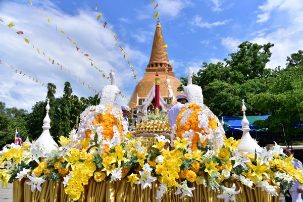 วันที่ 17 กรกฎาคม 2562 พระบาทสมเด็จพระเจ้าอยู่หัว ทรงพระกรุณาโปรดเกล้าโปรดกระหม่อม พระราชทานเทียนพรรษา ถวายแด่วัดพระปฐมเจดีย์ราชวรมหาวิหาร อำเภอเมือง จังหวัดนครปฐม เนื่องในวันเข้าพรรษา ประจำปี 2562 โดยมีการแห่เทียนพรรษาพระราชทาน และเทียนพรรษาจากโรงเรียนต่างๆ รอบองค์พระปฐมเจดีย์ จากนั้น นายชาญนะ เอี่ยมแสง ผู้ว่าราชการจังหวัดนครปฐม เป็นประธานอัญเชิญและจุดเทียนพรรษาพระราชทาน พระบาทสมเด็จพระเจ้าอยู่หัว ที่พระองค์ทรงพระกรุณาโปรดเกล้าโปรดกระหม่อม พระราชทาน ซึ่งทรงพระราชอุทิศเพื่อจุดบูชาพระรัตนตรัยและพุทธเจดียสถาน ตามพระอารามหลวงที่ตั้งอยู่ในจังหวัดต่างๆ ทั่วประเทศ ในวาระของฤดูกาลเข้าพรรษาของพระพุทธศาสนา ซึ่งวัดพระปฐมเจดีย์ เป็นพระอารามหลวงชั้นเอกพิเศษ ชนิดราชวรมหาวิหาร มีพระพรหมเวที รักษาการเจ้าคณะภาค 15 เป็นเจ้าอาวาส และในปีนี้มีพระภิกษุสามเณรปฏิบัติธรรมจำพรรษาจำนวน 176 รูป หลังจากนั้นผู้ว่าราชการจังหวัดนครปฐม ได้ถวายผ้าอาบน้ำฝน เครื่องบริขาร และจตุปัจจัยไทยธรรมแด่พระสงฆ์วัดพระปฐมเจดีย์ราชวรมหาวิหาร พร้อมมอบเกียรติบัตรแก่ผู้แทนโรงเรียนที่จัดเทียนพรรษาเข้าร่วมขบวนแห่ โดยมีหัวหน้าส่วนราชการ ข้าราชการ นักเรียน นักศึกษา และประชาชนร่วมถวายเทียนพรรษาและผ้าอาบน้ำฝนเป็นจำนวนมาก