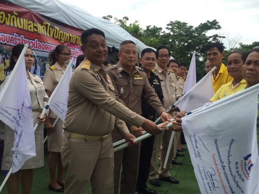 ยโดยเฉพาะอย่างยิ่งการดำเนินการป้องกัน โดยมุ่งเน้นเสริมสร้างความเข้มแข็งให้แก่ชุมชน ให้รอดพ้นจากพิษภัยยาเสพติด ด้วยภูมิคุ้มกัน ตลอดจนการเฝ้าระวังปัญหายาเสพติดที่ได้รับการแก้ไขแล้ว ไม่ให้กลับมาแพร่ระบาดได้อีก โครงการนี้จึงเป็นประโยชน์กับทุกคน จึงขอให้รักษาธงนี้ไว้เพื่อเป็นสัญลักษณ์ เป็นเครื่องเตือนใจว่าครอบคัวของเราจะไม่ยุงกับยาเสพติดตลอดไป รวมทั้งจะต้องช่วยกันป้องกันและแก้ไขปัญหายาเสพติดให้หมดไปจากหมู่บ้านและหมดไปจากตำบลไร่รถอย่างยั่งยืน