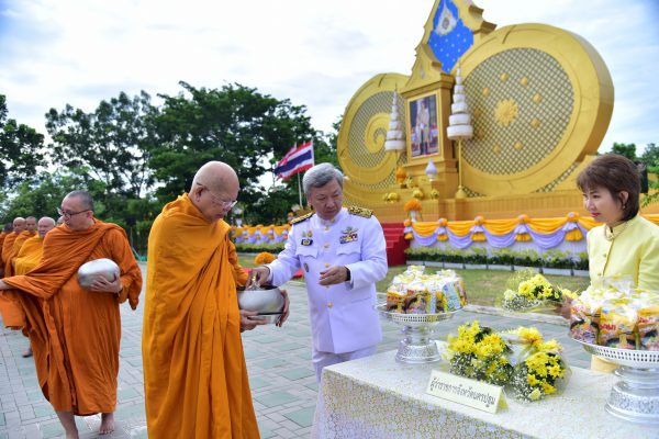 วันที่ 28 กรกฎาคม 2562 ที่บริเวณหน้าศาลากลางจังหวัดนครปฐม นายชาญนะ เอี่ยมแสง ผู้ว่าราชการจังหวัดนครปฐม พร้อมด้วย รองผู้ว่าราชการจังหวัด หัวหน้าส่วนราชการ ข้าราชการ ภาคเอกชน นักเรียน นักศึกษา และประชาชนชาวจังหวัดนครปฐม ร่วมพิธีทำบุญตักบาตรข้าวสาร อาหารแห้ง ถวายแด่พระสงฆ์ 68 รูป โดยมีพระพรหมเวที ผู้รักษาการเจ้าคณะภาค 15 เจ้าอาวาสวัดพระปฐมเจดีย์ ราชวรมหาวิหาร นำพระสงฆ์ออกรับบิณฑบาต เพื่อเฉลิมพระเกียรติและถวายเป็นพระราชกุศลแด่ พระบาทสมเด็จพระเจ้าอยู่หัว เนื่องในโอกาสวันเฉลิมพระชนมพรรษา 28 กรกฎาคม 2562 อีกทั้งเพื่อแสดงออกถึงความจงรักภักดี และสำนึกในพระมหากรุณาธิคุณ ตลอดจนเป็นการเทิดทูนสถาบันพระมหากษัตริย์ ด้วยการทำกิจกรรมทางพระพุทธศาสนาร่วมกัน โดยมีสถาบันพระมหากษัตริย์เป็นศูนย์รวมจิตใจของคนไทยทั้งชาติ ซึ่งในวันนี้ จังหวัดนครปฐมได้จัดกิจกรรรมต่างๆ เนื่องในโอกาสวันเฉลิมพระชนมพรรษา พระบาทสมเด็จพระเจ้าอยู่หัว ประกอบด้วย พิธีไถ่ชีวิตโค – กระบือ, พิธีถวายสัตย์ปฏิญาณเพื่อเป็นข้าราชการที่ดีของแผ่นดิน, พิธีลงนามถวายพระพรชัยมงคล, พิธีถวายราชสักการะ, การจัดกิจกรรมจิตอาสาพัฒนาคู คลอง, พิธีเปิดโครงการ 1 จังหวัด 1 สวนสาธารณเฉลิมพระเกียรติ และพิธีถวายเครื่องราชสักการะ จุดเทียนถวายพระพรชัยมงคล ในเวลา 19.00 น.