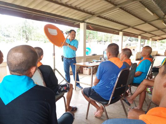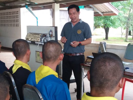 นำเจ้าหน้าที่สาธิตอาชีพ จำนวน 3 สาขา ช่างติดตั้งจานดาวเทียม ช่างติดตั้งเครื่องปรับอากาศ ช่างสีรถยนต์ระบบซ่อมด่วนโดยให้ผู้เข้าอบรมได้ทดลองปฏิบัติเพื่อสร้างแรงจูงใจในการเลือกพัฒนาอาชีพ