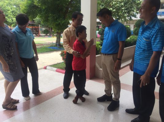 วันนี้(16 ส.ค.62) นายบุญชู จันทร์สุวรรณ นายก อบจ.สุพรรณบุรี พร้อมด้วยนายนาวิน พิกุลทอง นายก อบต.ทับตีเหล็ก อ.เมืองสุพรรณบุรี พร้อมด้วย น.ส.กิตติวรรณ หอมระรื่น รักษาการ ผู้อำนวยการ รพ.สต.ทับตีเหล็ก เดินทางไปที่โรงเรียนวัดแก้ว ต.ทับตีเหล็ก เพื่อให้กำลังใจและเยี่ยมเยียน ด.ช.วิชากร รอดเพ็ชร หรือน้องอาร์ม อายุ 10 นักเรียน ชั้น ป.3 พิการขาบิดงอผิดปกติ ทำให้เดินเหินไปมาไม่สะดวก อาศัยอยู่กับลุงซึ่งมีฐานะยากจน โดยพบว่าน้องยังคงสดใสร่าเริงและเล่นกับเพื่อนๆ วัยเดียวกัน เหมือนกับเด็กทั่วไป แต่ความผิดปกติที่ขาข้างขวาของน้องอาร์ม ทำให้ต้องรู้สึกเจ็บปวดทรมานในบางครั้ง เนื่องจากมีอาการขาบิดงอ ความยาวและขนาดไม่เท่ากัน ทำให้การใช้ชีวิตประจำวันไม่ค่อยสะดวก