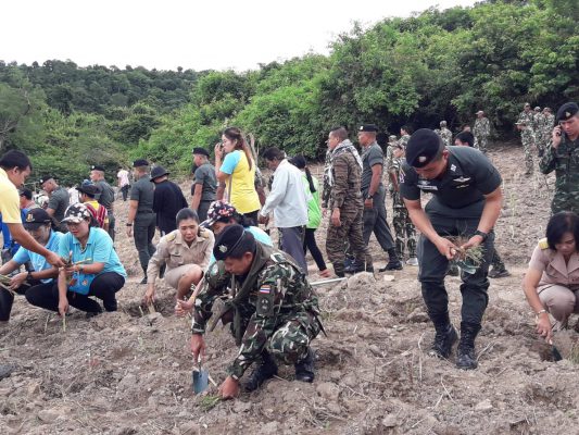 อุทยานแห่งชาติแก่งกระจาน ร่วมกับกองกำลังสุรสีห์และภาคีเคือข่ายปลูกพืชอาหารช้าง ตามโครงการอันเนื่องมาจากพระราชดำริ ที่บ้านป่าแดง ตำบลป่าเด็ง อำเภอแก่งกระจาน จังหวัดเพชรบุรี