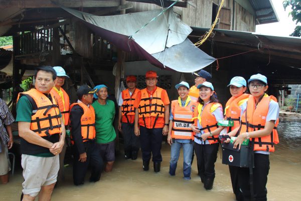 ผู้สื่อข่าวรายงานว่า เมื่อเวลา 8:00 น 1กันยายน 2562 นายศุภศิษย์ กอเจริญยศ รองผู้ว่าราชการจังหวัดอุบลราชธานี พร้อมด้วยหัวหน้าสำนักงานป้องกันบรรเทาสาธารณภัยจังหวัดอุบลราชธานีและนายอำเภอตระการพืชผล พร้อมด้วย นายก อบต.ขามเปี้ยและคณะ ลงเรือท้องแบน นำเครื่องอุปโภคบริโภค ยาเวชภัณฑ์และน้ำดื่ม ไปมอบให้กับราษฎรที่ได้รับผลกระทบประสบจากภัยน้ำท่วมจากพายุ “โพดุล” ที่บ้านท่าบ่อแบงหมู่ 3 ตำบลขามเปี้ย อำเภอตระการพืชผล 58 ครัวเรือนและวัดอีก 1 แห่ง ซึ่งน้ำท่วมสูงระดับ 2 เมตร ถนนจมน้ำถูกตัดขาดจากภายนอก พร้อมอพยพผู้ป่วยติดเตียงบ้านโนบ้อแบง หมู่ที่ 11 จำนวน 1 ราย ไปยังบ้านญาติที่ปลอดภัย นอกจากนั้นจังหวัดอุบลราชธานีและอบต.ขามเตี้ย ได้มอบเรือท้องแบนเพื่อใช้สัญจรเข้าออกหมู่บ้านด้วย พร้อมตั้งศูนย์ช่วยเหลือฯ และตั้งโรงครัวขึ้นในหมู่บ้านดังกล่าวด้วย