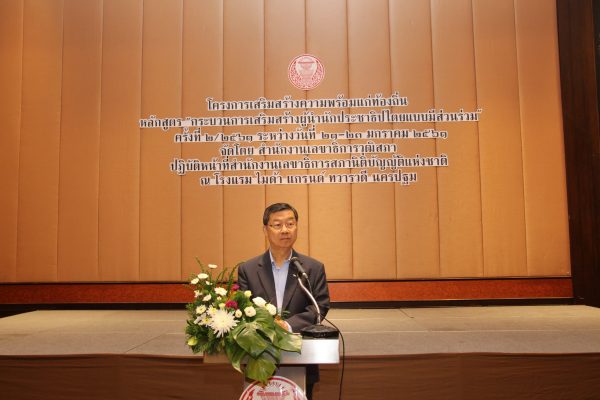 วันที่ ๒๑ – ๒๓ มกราคม ๒๕๖๑ สำนักงานเลขาธิการวุฒิสภา ปฏิบัติหน้าที่สำนักงานเลขาธิการสภานิติบัญญัติแห่งชาติ ได้จัดโครงการเสริมสร้างความพร้อมแก่ท้องถิ่น หลักสูตร “กระบวนการเสริมสร้างผู้นำนักประชาธิปไตยแบบมีส่วนร่วม” ขึ้น ณ ห้องทวารวดี ๑ โรงแรม ไมด้า แกรนด์ โฮเทล ทวารวดี นครปฐม อำเภอเมืองนครปฐม จังหวัดนครปฐม