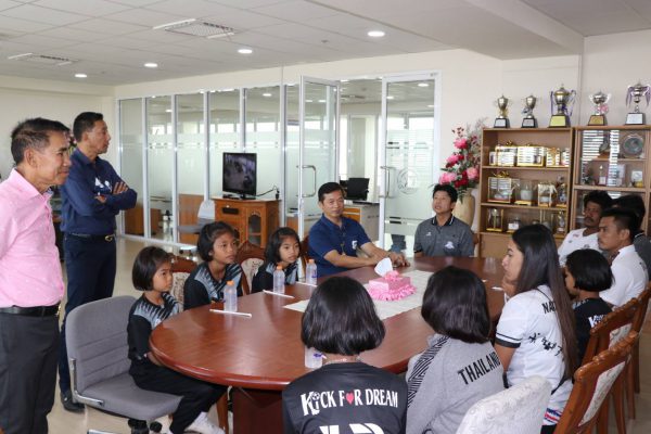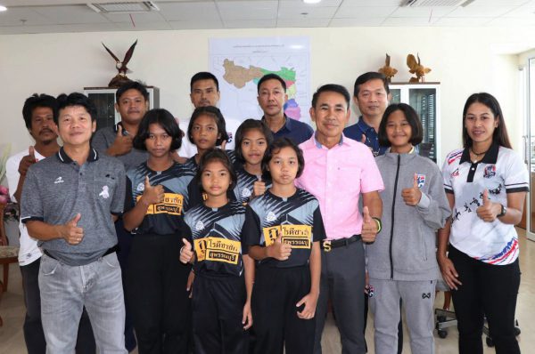 นายบุญชู จันทร์สุวรรณ นายก อบจ.สุพรรณบุรี พร้อมด้วย นายวิทยา บุณยพัชรินทร์ ประธานที่ปรึกษาพิเศษนายก อบจ.สุพรรณบุรี,นายโรจน์ทวี สุพรศิลป์ชัย รองนายกเทศบาลตำบลท่าเสด็จ ร่วมแสดงความยินดี และ ให้โอวาท “น้องเมย์” ด.ญ. รุ่งนภา ทนเถื่อน อายุ 14 ปี ปัจจุบันสังกัด โรงเรียนกีฬาจังหวัดนครสวรรค์ ในโอกาสที่ “ติดทีมนักฟุตบอลหญิงทีมชาติไทย รุ่นอายุไม่เกิน 14 ปี”เข้าร่วมการแข่งขันฟุตบอลหญิง รายการ UEFA-FAM U-15 Girl’s Tournament 2019 ณ กรุงกัวลาลัมเปอร์ ประเทศมาเลเซีย เมื่อวันที่ 1-7 ตุลาคม 2562 และ สามารถพาทีมชาติไทยคว้าตำแหน่ง รองแชมป์ ในรายการดังกล่าวได้อีกด้วย