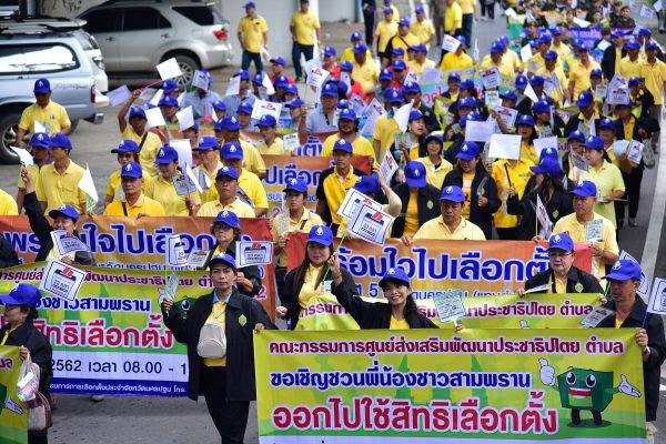 โดยในวันนี้ ประธานคณะกรรมการการเลือกตั้ง พร้อมด้วย กรรมการการเลือกตั้ง ผู้ว่าราชการจังหวัดนครปฐม เลขาธิการคณะกรรมการการเลือกตั้ง นายอำเภอสามพราน หัวหน้าส่วนราชการ ข้าราชการ กำนัน ผู้ใหญ่บ้าน หน่วยงานภาคเอกชน อาสาสมัครสาธารณสุข นักเรียน นักศึกษา และประชาชนในพื้นที่อำเภอสามพราน กว่า 500 คน ร่วมเดินรณรงค์เชิญชวนประชาชนออกไปใช้สิทธิเลือกตั้ง พร้อมแจกแผ่นพับแก่ประชาชนบริเวณตลาดสามพราน ตลอดจนมอบให้ผู้นำท้องที่ ผู้นำท้องถิ่น และเครือข่ายต่างๆ นำไปแจกจ่ายให้ประชาชนในพื้นที่อำเภอสามพราน ให้ออกมาใช้สิทธิเลือกตั้งอีกด้วย