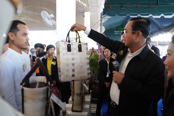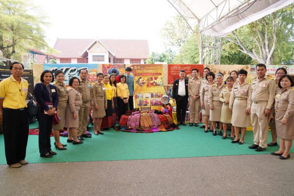 และจุดที่ 2 ณ สหกรณ์โคนมหนองโพราชบุรี (ในพระบรมราชูปถัมภ์) อ.โพธาราม จ.ราชบุรี ได้จัดแสดงนิทรรศการผลิตภัณฑ์ OTOP อาทิ กระเป๋ากาบกล้วย บ้านช่างสกุลบายศรี ซึ่งเป็นที่พัฒนาขึ้นตามอนวทางสัมมาชีพชุมชนที่ไม่เบียดเบียนตนเองและไม่เบียดเบียนสิ่งแวดล้อม เป็นผลิตภัณฑ์ที่ได้รับรางวัลชนะเลิศเครือข่ายองค์ความรู้ OTOP ระดับประเทศ กลุ่มวิสาหกิจชุมชนบ้านช่างสกุลบายศรี ต.เจ็ดเสมียน อ.โพธาราม จ.ราชบุรี นำต้นกล้วยมารังสรรค์ สร้างนวัตกรรมผ่านความร้อนธรรมชาติ ภายใต้แบรนด์ตานี เป็นกระเป้าแฟชั่นสวยงาม ส่งเข้าประกวดแข่งขัน ระดับประเทศได้รับรางวัลชนะเลิศ KBO จากกรมการพัฒนาชุมชน โดยนำต้นกล้วยที่มีอยู่มากมายในท้องถิ่น ใช้ประโยชน์ได้ทุกส่วน ตั้งแต่ต้นถึงใบ ลำต้นนำไปทำเป็นเชือกกล้วยมัดสิ่งของดูเหนียวคงทนแข็งแรง ไส้ในที่เรียกว่า ” หยวกกล้วย ” ของลำต้น นำไปประกอบอาหาร กินได้ทั้งต้นและส่วนใบก็จะนำไปห่อขนม หรือ ทำบายศรีบูชาเทพเจ้าสิ่งศักดิ์สิทธิ์ตามความเชื่อหลังจากที่กล้วยให้ผลผลิตตัดเครือออกไปแล้ว ต้นกล้วยก็จะถูกตัดทิ้งให้เน่าสลายไปในร่องสวนโดยเปล่าประโยชน์ จึงได้มีการนำต้นกล้วยน้ำว้า ต้นกล้วยตานี มาสร้างมูลค่าเพิ่ม ด้วยการนำส่วนของกาบมาผลิตเป็นกระเป๋าแฟชั่นได้อย่างสวยงาม อีกทั้งผลิตภัณฑ์อื่น ๆ เช่น หมวก เป้ กล่องใส่เอกสาร สมุดโน้ต โดยกลุ่ม ๆ ยังมีความคิดสร้างสรรค์ในการพัฒนาต่อยอด นำคาบกล้วยมาสร้างผลิตภัณฑ์ภายใต้แบรนด์ ตานี กระเป้าแต่ละชิ้นจะมีรูปลักษณ์สวยงามแปลกตา ที่สำคัญใช้ได้นานหลายปีไม่เปียกน้ำ ซึ่งเอกลักษณ์จุดเด่นของกาบกล้วยตานี คือ 1 ต้น 1 ใบ จะให้เฉดสีที่แตกต่างกัน ส่วนความนิยมขณะนี้เรียกได้ว่าเป็นเทรนด์ของโลก หรือ งานรักษ์โลก ถือเป็นงานรีไซเคิลเป็นสินค้าที่ตอบโจทย์ผลิตภัณฑ์ที่เป็นมิตรกับสิ่งแวดล้อม อีกทั้งที่นี่ยังเป็นแหล่งศึกษาเรียนรู้ให้กับนิสิต นักศึกษาและผู้ที่สนใจ ได้เข้ามาศึกษาหาความรู้ สามารถนำกลับไปพัฒนาต่อยอดสร้างอาชีพ สร้างรายได้แก่ชุมชนได้อย่างยั่งยืน