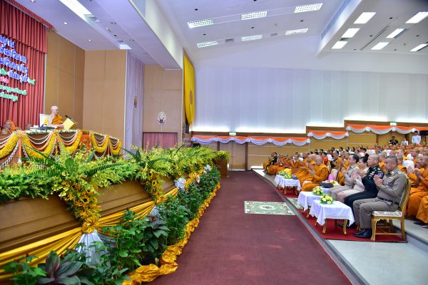 โอกาสนี้ สมเด็จพระอริยวงศาคตญาณ สมเด็จพระสังฆราช สกลมหาสังฆปริณายก ประทานพระโอวาท แก่ผู้สำเร็จการศึกษา ความว่า “ทุกท่านที่สำเร็จการศึกษา ล้วนเป็นผู้ทรงศักดิ์ และสิทธิ์ แห่งปริญญาบัตรสมตามภูมิรู้ที่ตนมีจากการศึกษาเล่าเรียนในมหาวิทยาลัย อย่างไรก็ดี การได้รับศักดิ์และสิทธิ์เช่นว่านี้ เป็นเพียงพันธสัญญาเบื้องต้น ของการนำความรู้และประสบการณ์ที่ได้รับมาจากการศึกษาในมหาวิทยาลัย ไปใช้ประกอบกิจการงาน ให้บังเกิดความเจริญก้าวหน้าแก่การพระศาสนา และชาติบ้านเมือง ขอบัณฑิตทั้งหลายอย่าประมาท หลงผิดคิดไปว่าเมื่อมีปริญญา แปลว่ามีความรู้มากพอแล้ว ก่อให้เกิดทิฐิมานะว่าเป็นคนเก่งหรือคนดีกว่าคนอื่น ความนึกคิดเช่นนี้จัดเป็นกิเลสอันร้ายกาจอย่างหนึ่ง ซึ่งจักนำพาความเสื่อมมาสู่ตนและสังคมส่วนรวม สมเด็จพระสัมมาสัมพุทธเจ้าทรงพร่ำสอนย้ำเตือนพุทธบริษัททั้งหลายไว้ว่า “มนต์มีการไม่ท่องบ่นเป็นมลทิน” นั่นย่อมหมายถึงว่า สรรพวิชาความรู้ที่เราได้เล่าเรียนศึกษามาแล้ว หากไม่รู้จักเอาใจใส่ทบทวน และศึกษาเพิ่มเติม ในที่สุดก็ย่อมเป็นมลทิน และยังทรงสรุปความเป็นมลทินที่ร้ายแรงที่สุดไว้ว่า “มลทินที่ยิ่งกว่านั้นคือ อวิชชา เป็นมลทินอย่างยิ่ง” เพราะฉะนั้น จึงขอให้ทุกท่าน กวดขันตนเองให้มีความวิริยอุตสาหะในอันที่จะขวนขวายศึกษาเรียนรู้ในสรรพวิชชาอยู่เป็นนิตย์ เพื่อกำจัดอวิชชาให้เบาบางและหมดสิ้นไป บังเกิคุณประโยชน์ยิ่งใหญ่ เป็นความงอกงามไพบูลย์ทั้งทางโลกและทางธรรม สมปณิธานปรารถนาของบัณฑิตผู้ต่างมุ่งหวังความเจริญก้าวหน้าด้วยกันทุกรูป ทุกคน”
