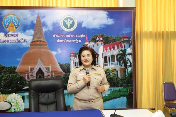 ได้รับความปลอดภัยจากการเลือกบริโภคผลิตภัณฑ์สุขภาพได้รับเกียรติจาก ภก.รัตนาวดี จูละยานนท์ รองนายแพทย์สาธารณสุขจังหวัดนครปฐม กล่าวเปิดการประชุม