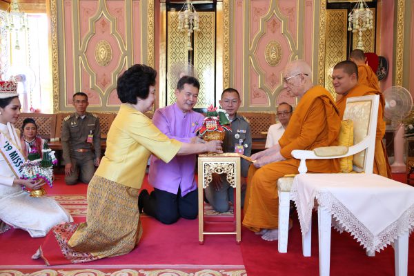 วันที่ 22 พฤศจิกายน 2562 เวลา 10.30 นายสุทธิพงษ์ จุลเจริญ พร้อมด้วย ดร.วันดี กุญชรยาคง ประธานสภาสตรีแห่งชาติในพระบรมราชินูปถัมภ์ ได้นำ น้องบิ๊นท์ นางสาวสิรีธร ลีห์อร่ามวัฒน์ นางสาวไทยปี 2562 พร้อมด้วย ดร.สิริกานต์ อ้นสนกราน เจ้าของโรงแรมเอ็นสิริและสิริไทยเจมส์ผู้ส่งประกวด พร้อมคณะจากสมาคมนักเรียนเก่าวชิราวุธ ผู้จัดประกวดนางสาวไทย เข้ากราบสักการะสมเด็จพระสังฆราช เพื่อเป็นศิริมงคล เนื่องในโอกาสที่น้องบิ๊นท์ นางสาวไทย ได้รับการคัดเลือกจากเวทีประกวดประเทศญี่ปุ่น ให้เป็น Miss International ที่ประเทศไทยรอคอยมากว่า 59 ปี ณ วัดราชบพิธสถิตมหาสีมาราม