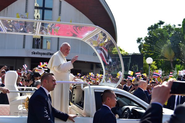 สมเด็จพระสันตะปาปาฟรังซิส เสด็จพบคณะบาทหลวง นักบวชชายหญิง บรรดาบิชอปของไทยและของสหพันธ์แห่งบิชอปแห่งเอเชีย และนักบวชเยซุอิสที่สังกัดในประเทศไทย ณ วัดนักบุญเปโตร อำเภอสามพราน จังหวัดนครปฐม