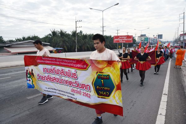 ที่โรงเรียนสายธรรมจันทร์ ต.ท่านัด อ.ดำเนินสะดวก จ.ราชบุรี นายชนพล ส่งเสริม นายอำเภอดำเนินสะดวก เป็นประธานในพิธีเปิดกีฬาสัมพันธ์ สมานฉันท์วิทยาลัยสงฆ์ ภาคตะวันตก ประจำปี 2562 โดยมี นายจรัญ สุขเสรี ผอ.โรงเรียนสายธรรมจันทร์ พระครูโสภณวีรานุวัตร, ดร.รอง ผอ.ฝ่ายบริหาร วิทยาลัยสงฆ์สุพรรณบุรี ศรีสุวรรณภูมิ ดร.เพ็ญพรรณ เฟื่องฟูลอย รักษาการรอง ผอ.วิทยาลัยสงฆ์สุพรรณบุรี ศรีสุวรรณภูมิ ดร.ณัฐกร ปังละออ นางวรพร พรหมใจรักษ์ คณะครู นิสิตนักศึกษา นักกีฬา และประชาชน เข้าร่วมกิจกรรมโครงการกีฬาสัมพันธ์ สมานฉันท์วิทยาลัยสงฆ์ ภาคตะวันตก ได้จัดขึ้นเป็นประจำทุกปี