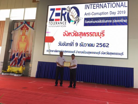 สำหรับในปี พ.ศ. 2562 นี้ จังหวัดสุพรรณบุรี และสำนักงาน ป.ป.ช. ประจำจังหวัดสุพรรณบุรี ได้ตระหนักถึงปัญหาของการทุจริตคอร์รัปชันดังกล่าว จึงได้จัดโครงการวันต่อต้านคอรัปชันสากล (ประเทศไทย) จังหวัดสุพรรณบุรีขึ้น เพื่อให้ทุกภาคส่วนได้เข้ามามีส่วนร่วมในการแสดงพลังและประกาศเจตนารมณ์ในการต่อต้านการทุจริต และไม่ยอมรับการทุจริตในทุกรูปแบบ ภายใต้แนวคิด “Zero Tolerance คนไทยไม่ทนต่อการทุจริต”