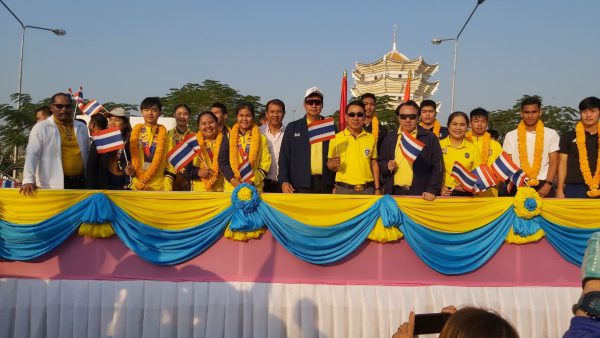 นำโดย นายนิมิต วันไชยธนวงศ์ ผวจ.สุพรรณบุรี พร้อมด้วยนายสรชัด สุจิตต์ สส.สุพรรณบุรี พรรคชาติไทยพัฒนา นายบุญชู จันทร์สุวรรณ นายก อบจ.สุพรรณบุรี นายเอกพันธุ์ อินทร์ใจเอื้อ นายกเทศมนตรีเมืองสุพรรณบุรี นายอัครวิทย์ จิ๋วนารายณ์ ผู้อำนวยการสำนักงาน กกท. ภาค2 ร่วมรับร่วมรับและแสดงความยินดีนักกีฬาทีมชาติไทยสายเลือดสุพรรณบุรี” พร้อมกับขบวนแห่เชิดชูเกียรติ ผู้ได้รับเหรียญรางวัลจากการแข่งขันกีฬาซีเกมส์ 2019 ที่ประเทศฟิลิปปินส์ โดยนักกีฬาสายเลือดสุพรรณบุรี ได้ 5 เหรียญทอง 7 เหรียญเงิน และ 3 เหรียญทองแดง ขบวนเริ่มต้นแห่ตั้งแต่อุทยานมังกรสวรรค์มุ่งสู่ สวนเฉลิมภัทรราชินี อ.เมือง สุพรรณบุรี โดยมีประชาชนยืนแสดงความยินดีและให้กำลังสองข้างถนนจำนวนมาก
