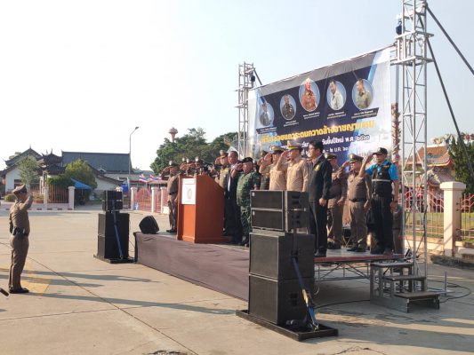 ทั้งนี้ มี พล.ต.ต.นิธิธร จินตกานนท์ ผบก.ภ.จว.สุพรรณบุรี รองผู้บังคับการ หัวหน้าสถานี กำลังเจ้าหน้าที่ตำรวจ ทหาร ฝ่ายปกครอง สมาชิกอาสารักษาดินแดน อาสาป้องกันและบรรเทาสาธารณภัย อาสาตำรวจชุมชน รวม 350 นาย