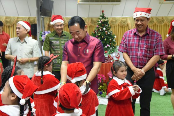 โดยนายเอกพันธ์ อินทร์ใจเอื้อ นายกเทศมนตรีเมืองสุพรรณบุรี ผู้บริหารเทศบาลเมืองสุพรรณบุรี ผู้บริหารสถานศึกษา และสมาชิกสภาเทศบาล ให้การต้อนรับ พร้อมด้วยชุดการแสดงของเด็กๆ แต่งชุดซันตราครอส ในเทศกาลวันคริตสมาส อีกด้วย