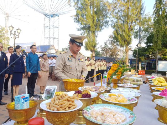 ผู้ว่าราชการจังหวัดสุพรรณบุรี ส่วนราชการจัดพิธีบวงสรวง ขอพระบรมราชานุญาต การจัดแสดงยุทธหัตถี ในงานอนุสรณ์ดอนเจดีย์ จังหวัดสุพรรณบุรี ประจำปี 2563
