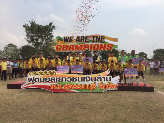 ที่สนามกีฬาโรงเรียนบรรหาร-แจ่มใสวิทยา 1 อ.ดอนเจดีย์ จ.สุพรรณบุรี นายบุญชู จันทร์สุวรรณ นายก อบจ.สุพรรณบุรี เป็นประธานปิดการแข่งขันกีฬาฟุตบอลเยาวชนเงินล้าน อบจ.สุพรรณบุรี ลีกคัพ ระดับมัธยมศึกษาตอนต้น ปีที่ 7 ซึ่งจัดขึ้นระหว่างวันที่ ๑๖ พฤศจิกายน ๒๕๖๒ –๑3 มกราคม ๒๕๖๓