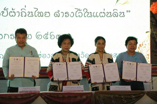 เมื่อวันที่ 17 มกราคม 2563 ณ ศูนย์ศิลปาชีพ จังหวัดแม่ฮ่องสอน เวลา 17.00 น นายสุทธิพงษ์ จุลเจริญ อธิบดีกรมการพัฒนาชุมชน และ ดร.วันดี กุญชรยาคง จุลเจริญ ประธานสภาสตรีแห่งชาติในพระบรมราชินูปถัมภ์ พร้อมด้วย นางรชตภร โตดิลกเวชช์ ประธานกรรมการบริหาร สภาสตรีฯ คณะกรรมการสภาสตรี ร่วมพิธีลงานมบันทึกข้อตกลงว่าด้วยการประสานความร่วมมือ ตามโครงการ “สืบสาน อนุรักษ์ศิลป์ผ้าถิ่นไทย ดำรงไว้ในแผ่นดิน”กับนายสุวพงศ์ กิตติภัทรพิบูลย์ ผู้ว่าราชการจังหวัดแม่ฮ่องสอน พร้อมด้วยหัวหน้าส่วนราชการ เพื่อรณรงค์ให้พี่น้องประชาชนชาวแม่ฮ่องสอน ร่วมกันสวมใส่ผ้าไทยชนเช่า ประกอบด้วย ผ้าไทยใหญ่ ผ้าไทยกะเหรี่ยง/ปาปะเกอยอ ผ้าไทยลีซู นิยมใช้สีสันผ้าสดใส ผ้าไทยมูเซอหรือลาหุแดง ผ้าไทยมูเซอดำหรือลาหุดำ ผ้าไทยม้ง ศึ่งได้้รับการยกย่องว่ามีฝีมือในการปัก และมีทักษะในการทำกระโปรงจีบ ผ้าไทยละเวื้อ มีการแต่งกายด้วยเครื่องประดับ ผ้าไทยกระเหรี่ยงโป นิยมการปักด้วยลูกเดีอย ซึ่งผ้าไทยชนเผ่า ด้วยลักษณะภูมิประเทศของแม่ฮ่องสอน ส่วนใหญ่เป็นภูเขา มีพี่น้องชนเผ่าชาติพันธุ์ หลากหลายอาศัยอยู่ร่วมกันอย่างมีความสุขมาเป็นเวลาช้านาน มีการสืบสานศิลปวัฒนธรรมผ่านผ้าไทยชนเผ่า ที่มีความงดงามและเอกลักษณ์เฉพาะของแต่ละชนเผ่า