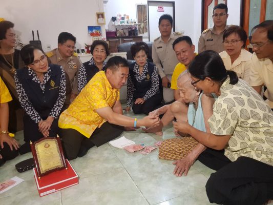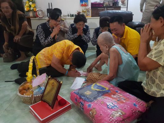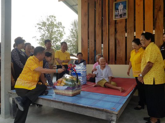 พร้อมทั้งลงพื้นที่เยี่ยมให้กำลังใจ และมอบกระเช้าผลไม้ให้แก่ผู้สูงอายุ ที่มีความเป็นอยู่ที่เรียบง่าย ปฏิบัติตัวเป็นแบบอย่างที่ดี เป็นที่เคารพนับถือของลูกหลาน เพื่อนบ้าน และในชุมชน ได้ดูเป็นแบบอย่างตามวัฒนธรรมประเพณีไทย จำนวน 2 ราย ได้แก่