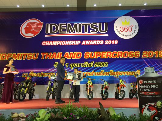 วันนี้ ( 1 ก.พ. 63)ที่ห้องประชุม อบจ.สุพรรณบุรี นายบุญชู จันทร์สุวรรณ นายกสมาคมกีฬาแข่งรถจักรยานยนต์ 360 องศา เป็นประธานประธานในพิธีมอบรางวัลให้แก่นักกีฬาที่เข้าร่วมการแข่งขัน “Idemitsu Thailand supercross 2019” จำนวน 17 รุ่น ซึ่งได้ดำเนินการแข่งขันตั้งแต่เดือน มีนาคม ถึง ธันวาคม 2562ณ สนามการแข่งขันทั่วทุกภาคของประเทศไทย รวมทั้งหมด 10 สนามการแข่งขัน