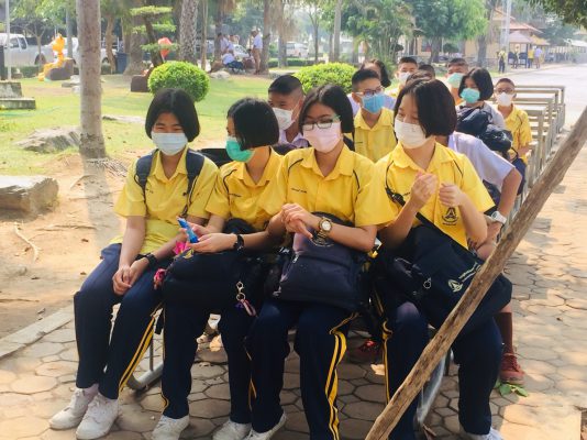 ที่ จ.สุพรรณบุรี สถานการณ์ฝุ่นละอองขนาดเล็ก หรือ PM 2.5 ไมครอน ในภาพรวมของประเทศ รวมทั้งจังหวัดสุพรรณบุรี มีค่าค่อนข้างสูงจนอาจมีผลต่อสุขภาพอนามัยของพี่น้องประชาชน โรงเรียนหลายแห่งทั่งระดับอนุบาล ประถม และมัธยม ต่างให้ความสำคัญและประชาสัมพันธ์ให้นักเรียนสมหน้ากากอนามัย เพื่อป้องกันเชื้อไวรัส-ค่าฝุ่น PM2.5