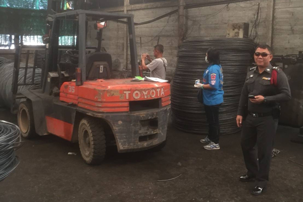 จาการสอบสวน ผู้เห็นเหตุการณ์ พึ่งเป็นคนงานต่างด้าวด้วยกันคือนายไปไป สัญชาติพม่า อายุ 23 ปี เพื่อนร่วมงานผู้เห็นเหตุการณ์ เล่าว่า ช่วงเวลาเกิดเหตุ ขณะผู้ตายทำงานภายในโรงงานตามปกติ กับเพื่อนๆ คนงานคนอื่นๆ ผู้ตายได้ขึ้นขับรถฟอร์คคลิฟท์ ยกเหล็กม้วนชูขึ้นแล้วค้างไว้ ระหว่างที่ยกเหล็กขึ้นไว้นั้น ผู้ตายได้ลงจากที่นั่งขับมายืนข้างตัวรถฟอร์คคลิฟท์ แล้วก้มศีรษะลงไปในช่องระหว่างพวงมาลัย กับ คานยก แต่ขาของผู้ตายได้ไปดันถูกคันโยกทำให้ตัวยกที่มีม้วนเล็กยกคาอยู่ รูดตกลงพื้นอย่างเร็ว บีบทับศีรษะของผู้ตาย กลางความตกใจของเพื่อนคนงานที่เห็น ซึ่งเพื่อนคนงานคนอื่น ได้เข้าช่วยกัน บังคับคันโยก ขึ้นแล้วน้ำล่างของ ผู้ตายออก มานอนที่พื้นแต่พบว่าเสียชีวิตแล้ว
