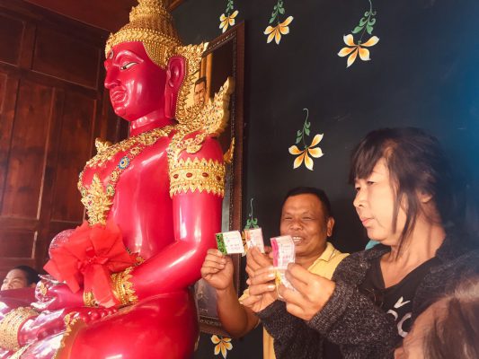 ที่วัดเถรพลาย ต.วังน้ำซับ อ.ศรีประจันต์ จ.สุพรรณบุรี ได้มีชาวบ้านจำนวนมาก เดินทางนำดอกไม้ ธูปเทียนสีชมพู มากราบไหว้ หลวงพ่อสีชมพู ที่ประดิษฐานภายในวัดเถรพลาย โดยชาวบ้านได้ร่วมทำบุญกับทางวัด พร้อมทั้งนำเทียนรูปดอกบัว ลอยในอ่างหน้าหลวงพ่อสีชมพู เพื่อแก้บน หลังจากในการออกรางวัลสลากกินแบ่งรัฐบาล งวดประจำวันที่ 16 ก.พ. มีชาวบ้านได้รับโชคจากเลขหางประทัด 94 ที่จุดในงานฉลองครบรอบ 9 ปี หลวงพ่อสีชมพู นำไปหาซื้อสลากกินแบ่งรัฐบาล ทำให้มีผู้ได้รับโชคอย่างมากมาย รวมถึงมีผู้ถูกรางวัล ที่ 5 อีกด้วย