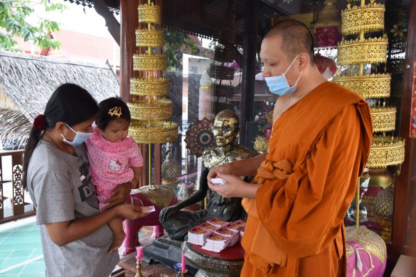 นอกจากนี้ยังได้ร่วมกับทางเจ้าหน้าที่สาธารณสุขในพื้นที่ตั้งจุดคัดกรอง ตรวจและวัดไข้ให้กับญาติโยมที่เดินทางมากราบไหว้องค์หลวงพ่อสีชมพูด้วย ล่าสุดทางวัดได้จัดสร้างยันต์เกราะเพชรคุ้มภัยโรคโควิด 19 จำนวน 10,000 แผ่น เพื่อแจกให้กับทุกคนที่เดินทางมาที่วัดด้วย