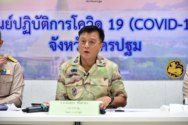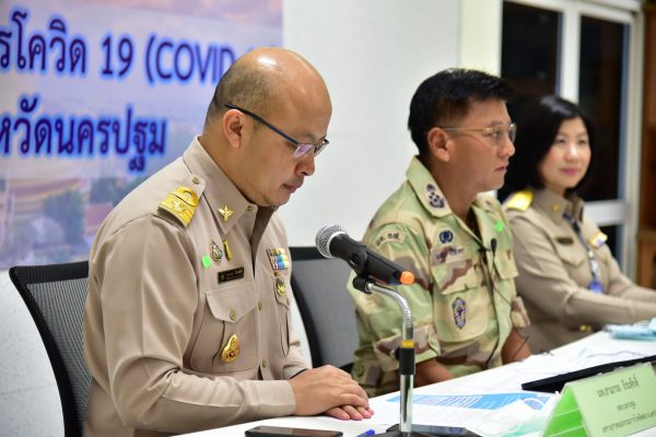วันที่ 23 มีนาคม พ.ศ.2563 ที่สำนักงานประชาสัมพันธ์จังหวัดนครปฐม ร้อยตรีพงศธร ศิริสาคร รองผู้ว่าราชการจังหวัดนครปฐม พร้อมด้วยนายแพทย์สามารถ ถิระศักดิ์ นายแพทย์สาธารณสุขจังหวัดนครปฐม แพทย์หญิงดารารัตน์ รัตนรักษ์ ผู้อำนวยการโรงพยาบาลนครปฐม ชี้แจงสถานการณ์ Covid-19 ของจังหวัดนครปฐม ซึ่งสถานการณ์ในขณะนี้ นับตั้งแต่เกิดสถานการณ์ Covid- 19 จ.นครปฐมมีผู้ป่วยยืนยันสะสม 6 ราย กลับบ้านแล้ว 1 ราย (ตั้งแต่ 24 ม.ค.63 ) ส่วนอีก 5 รายกำลังรับการรักษาและมีอาการดีขึ้นโดยลำดับ และมีผู้เข้าข่ายเฝ้าระวังสังเกตอาการ ซึ่งอยู่ระหว่างรอผลทางห้องปฏิบัติการ 4 ราย