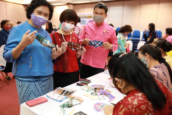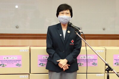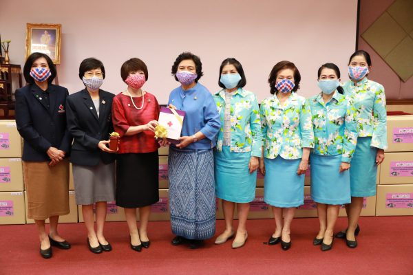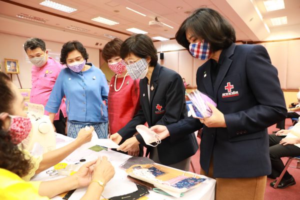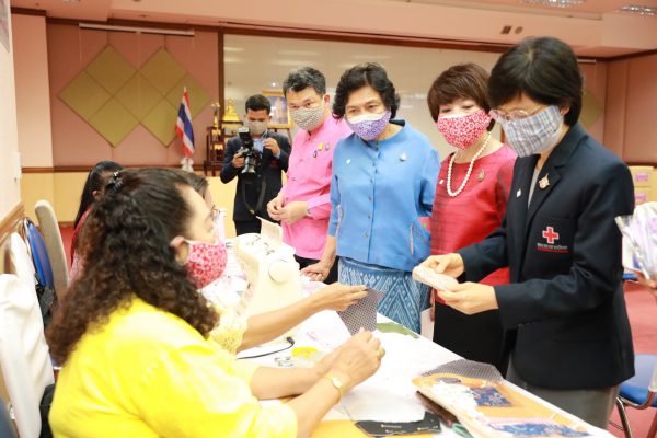 คุณจันทร์ประภา วิชิตชลชัย รองผู้อำนวยการสำนักงานจัดหารายได้ สภากาชาดไทย รักษาการในตำแหน่ง ผู้อำนวยการสำนักงานจัดหารายได้ สภากาชาดไทย กล่าวว่า “ขอขอบคุณท่านอธิบดีกรมการพัฒนาชุมชน ได้ตอบรับที่สภากาชาดไทยได้แจ้งความประสงค์มาในทันทีที่ทราบว่าเรากำลังขาดแคลน ขอขอบคุณไปยังสภาสตรีแห่งชาติในพระบรมราชินูปถัมภ์ ชมรมแม่บ้านพัฒนาชุมชน และเครือข่าย OTOP เครือข่ายกองทุนพัฒนาบทบาทสตรี ที่ได้ร่วมแรง ร่วมใจกัน ตัวเลขของหน้ากากอนามัยที่ท่านอธิบดีได้แจ้งมา ทำให้พวกเราเกิดกำลังใจที่จะทำหน้าที่ในการจัดหาโลหิตเพื่อนำไปให้ผู้ป่วยที่มีความจำเป็น วันนี้สภากาชาดไทยได้มีโอกาสมารับมอบหน้ากากอนามัยจากท่านอธิบดี สภาสตรีแห่งชาติในพระบรมราชินูปถัมภ์ คณะทำงาน และทุกท่านที่อยู่ในที่นี้ ในนามของสภากาชาดไทย อยากให้ทุกท่านมั่นใจว่า หน้ากากอนามัยชนิดผ้าที่ทุกท่านได้ร่วมแรงร่วมใจกัน เราจะนำไปใช้ให้เกิดประโยชน์สูงสุดให้กับงานของสภากาชาดไทย”
