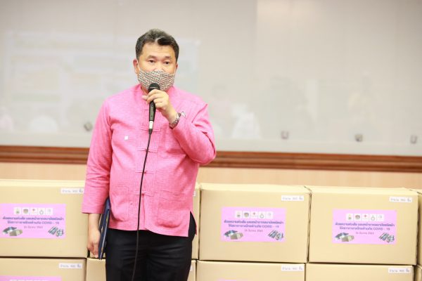 โดยหน้ากากทั้งหมดที่ส่งมอบในวันนี้เกิดจากหัวใจของพี่น้องที่ทั้ง 76 จังหวัด เนื่องจากเราทราบดีว่าสถานการณ์การแพร่ระบาดนี้ มีความจำเป็นที่จะต้องใช้หน้ากาก เราจึงประสานขอความร่วมมือไปในทุกจังหวัด และเป็นความโชคดีของกรมการพัฒนาชุมชน เพราะบุคลากรของเราได้ไปเป็นวิทยากรและนำพาสมาชิกกองทุนพัฒนาบทบาทสตรี และกลุ่มโอทอป รวมพลังกันผลิต ตัดเย็บหน้ากากเอาไว้ใช้ในครัวเรือนได้ เรียกว่าไปสอนครู ก และครู ก ก็ได้ไปสอนพี่น้องในหมู่บ้าน ชุมชนให้ตัดเย็บหน้ากากให้ได้ปริมาณที่มากขึ้น และสามารถนำไปจำหน่ายได้ วัตถุดิบบางส่วนก็ไม่ต้องซื้อเนื่องจากมีอยู่แล้ว แต่บางแห่งก็มีการจัดซื้อวัตถุดิบบางส่วนเพื่อให้ได้หน้ากากตามมาตรฐานที่แพทย์แนะนำ นี่ก็เป็นเครื่องยืนยันว่า สภากาชาดไทยเป็นศูนย์รวมจิตใจโดยแท้ อีกทั้งศูนย์บริการโลหิตของสภากาชาดไทย ที่พี่น้องได้เสียสละ และร่วมกันส่งความปรารถนาดีและช่วยเป็นกำลังใจให้กับบุคลากรของสภากาชาดไทย รวมทั้งทุกท่านที่จะไปบริจาคโลหิตให้ได้รับสิ่งที่ดี ตามที่สภากาชาดไทยได้ตั้งเป้าหมายเอาไว้ โดยหน้ากากอนามัย จำนวน 35,000 ชิ้นครั้งนี้ จะเอาชนะวิกฤตการณ์นี้ไปด้วยกัน เพราะทุกคนเต็มใจที่อยากจะช่วยเหลือ และหากว่าจำนวนนี้ไม่เพียงพอกับความต้องการ ก็สามารถประสานมาเพื่อขอรับหน้ากากได้อีก โดยกรมการพัฒนาชุมชน พร้อมให้การสนับสนุนจะสมทบให้อีกทันที