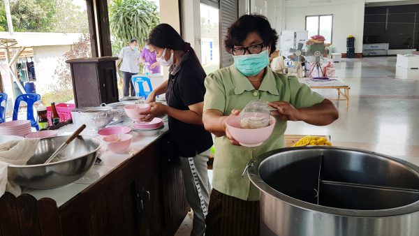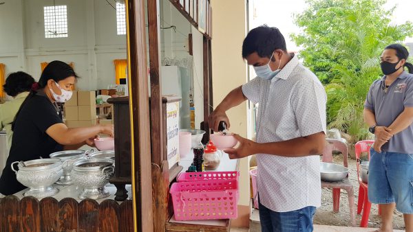 พระครูพิสุทธิรัตนาภรณ์ เจ้าอาวาสวัดเถรพลาย ต.วังน้ำซับ อ.ศรีประจันต์ จ.สุพรรณบุรี เปิดเผยว่าทางวัดเถรพลาย ร่วมกับคณะกรรมการวัด ทำตามนโยบายของจังหวัดสุพรรณบุรี คนไทยไม่ทอดทิ้งกัน โดยทางคณะสงฆ์วัดเถรพลาย ขอน้อมรับพระบัญชา สมเด็จพระสังฆราชฯ ได้ร่วมกับทางแม่ครัววัดช่วยกันจัดตั้งโรงทานก๋วยเตี๋ยวเลี้ยงฟรี ให้พี่น้องประชาชนที่ได้รับผลกระทบจากสถานการณ์ไวรัสโควิด 19 ระบาดได้รับทานก๋วยเตี๋ยวฟรี เพื่อเป็นการแบ่งเบาค่าใช้ของประชาชน โดยประชาชนสามารถมารับทานที่วัดก็ได้ โดยต้องเน้นต้องสวมหน้ากากอนามัยและล้างมือด้วยเจลแอลกอฮอล์ ก่อนที่จะรับประทานก๋วยเตี๋ยว แต่ถ้ารับทานที่วัดก็ต้องนั่งเว้นระห่างด้วย แต่ส่วนใหญ่ประชาชนจะสั่งก๋วยเตี๋ยวใส่ถุงกลับไปรับทานที่บ้านหรือใส่ถุงนำกลับไปรับทานที่ทำงานด้วย