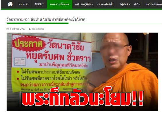 หลวงพี่น้ำฝน เจ้าอาวาสวัดไผ่ล้อม เผยว่า จากภาพในเพจดังกล่าวมีการตัดต่อภาพของอาตมาไปใช้ ซึ่งทางไวยวัจกร หรือฝ่ายกฎหมายของวัด ได้เห็นแล้ว เป็นลักษณะไม่ให้เผาศพ แต่วัดที่ทำเป็นวัดที่ จังหวัดมหาสารคาม ซึ่งทางฝ่ายกฎหมายเห็นว่าเกิดความเสียหายกับชื่อเสียงของวัด ซึ่งเอาภาพของเจ้าอาวาสไปใช้ทำให้ประชาชนสับสนและเข้าใจผิดและวัดไผ่ล้อมยังมีการดำเนินการรับดำเนินการประกอบพิธีศพตามปกติวันนี้ก็มี 2 ศพ โดยไม่เกี่ยงว่าศพนั้นจะเป็นโรคอะไร รวมถึงไวรัสโควิด -19 ก็รับถ้ามีมา