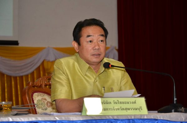 ที่หอประชุมอาชาสีหมอก ศาลากลางจังหวัดสุพรรณบุรี นายนิมิต วันไชยธนวงศ์ ผู้ว่าราชการจังหวัดสุพรรณบุรี เป็นประธานเปิดโครงการ การขับเคลื่อนการพัฒนาประเทศ ตามโครงการไทยนิยม ยั่งยืน