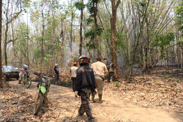 นายปกรณ์ กรรณวัลลี นอภ.สังขละบุรี จ.กาญจนบุรี พร้อมด้วยเจ้าหน้าที่ อส.สังขละบุรี ใช้ช่วงเวลาในวันหยุดเสาร์-อาทิตย์ ลุยดับไฟป่า ที่กำลังลุกไหมข้างทาง กลางป่าทุ่งใหญ่นเรศวร ขณะกำลังเดินทางไปเยี่ยมและให้กำลังใจ ประชาชนในช่วงที่เกิดวิกฤติ โควิต 2019 ที่บ้านจะแก หมู่ที่ 6 ต.ไล่โว่ อ.สังขละบุรี ซึ่งเป็นหมู่บ้านที่อยู่ห่างไกลที่สุด