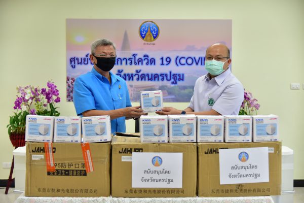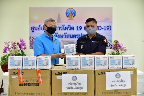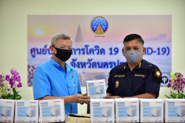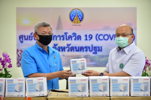 จากนั้น ผู้ว่าราชการจังหวัดนครปฐม ได้มอบหน้ากากอนามัย N95 ซึ่งได้รับการสนับสนุนจากกระทรวงมหาดไทย โดยมอบให้กับสำนักงานสาธารณสุขจังหวัดนครปฐม 3,000 ชิ้น และเรือนจำกลางนครปฐม 500 ชิ้น รวมทั้งสิ้น 3,500 ชิ้น เพื่อแจกจ่ายให้กับบุคลากรและเจ้าหน้าที่ ใช้ในการปฏิบัติงาน จากสถานการณ์การแพร่ระบาดของไวรัส COVID-19