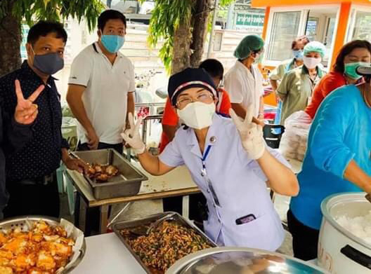 พวกเราจึงต้องช่วยกันดูแลคณะแพทย์พยาบาล บุคคลากรทางการแพทย์ ได้มีอาหารการกินอย่างดีเพื่อเป็นกำลังใจให้เขาเหล่านี้ช่วยกันดูแลรักษาคนไข้ เพราะต้องพาตัวเองเข้าไปเสี่ยงในการรักษาคนไข้ การเลี้ยงอาหารจึงเป็นอีกหนึ่งกำลังใจที่หลั่งไหลไปให้ทีมแพทย์ที่กำลังทำงานอย่างหนักเพื่อช่วยชีวิตคนไข้