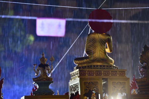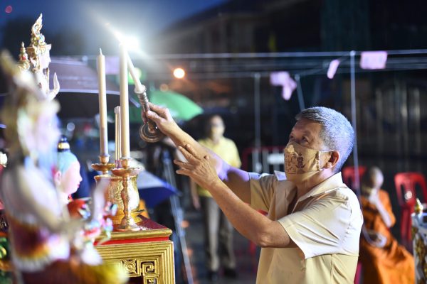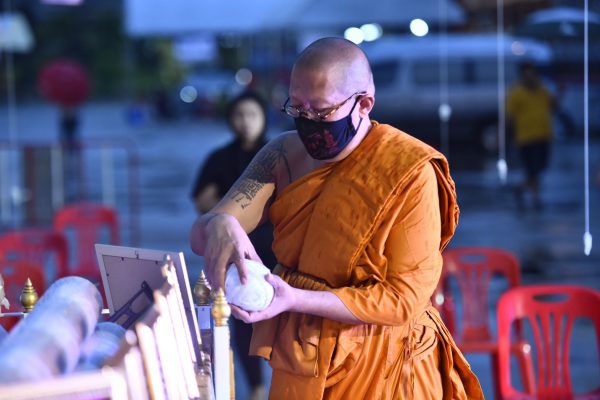 หลวงพี่น้ำฝน ได้กล่าวกับผู้สื่อข่าวว่า ในวันนี้วัดไผ่ล้อมไม่ได้จัดกิจกรรมใดๆเพียงแต่มีการเจริญพระพุทธมนต์ วัดไผ่ล้อมก็ทำเป็นประจำทุกปีอยู่แล้ว เปรียบเสมือนเป็นการอวยพรให้ญาติโยมทั้งหลายในวันสงกรานต์หรือปีใหม่ไทย ทั่วประเทศ ทั่วโลกนั่นเอง เราใช้บทพระพุทธมนต์ของพระพุทธเจ้า เป็นหลักชัย เพราะการกำหนดเวลาในการทำพิธีแล้ว เมื่อถึงเวลาไม่ว่าจะแดดออก หรือฝนตก ถ้าเราตั้งใจมุ่งมั่นแล้วเราก็ต้องทำ เฉกเช่นในการเจริญพระพุทธมนต์นี้ คือบทธรรมจักรกัปวัตนสูตร ซึ่งเป็นบทหลักที่องค์สัมมาสัมพุทธเจ้านั้นได้ตรัสรู้เป็นองค์สมเด็จพระสัมมาสัมพุทธเจ้า และในวันนี้เป็นวันสงกรานต์และอยู่ในช่วงที่ทุกสถานที่ ทุกแห่งปิดการเคลื่อนไหวทั้งหมด และการสวดมนต์แผ่เมตตาบารมีในครั้งนี้ ก็คือพระมีหน้าที่จะต้องสวดมนต์ มีหน้าที่ให้หลักธรรม ในการที่จะดำเนินชีวิตโดยเฉพาะขวัญและกำลังใจ การเจริญพระพุทธมนต์นั้นเป็นหน้าที่ของพระสงฆ์ทุกๆรูป อยู่แล้ว เพราะฉะนั้นอาตมาจึงได้จัดการเจริญพระพุทธมนต์ เพื่อเป็นขวัญและกำลังใจให้แก่ญาติโยมทั้งหลาย โดยเฉพาะโรคระบาดที่เรากำลังเผชิญอยู่ในขณะนี้ มีอย่างเดียวที่พระจะทำได้ก็คือการเจริญพระพุทธมนต์ จากการที่ผู้สื่อข่าวได้ กราบนมัสการถาม หลวงพี่น้ำฝน ถึง หน้ากากผ้ามัสลิน “ยันต์นะปัดตลอด” ในวันนี้ถึงกระแสร์ว่าเป็นอย่างไร