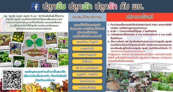 ในตอนท้ายของการประชุม อธิบดีกรมการพัฒนาชุมชนได้ฝากเชิญชวนเจ้าหน้าที่และเครือข่ายให้เข้าร่วมเป็นสมาชิก Facebook กลุ่ม “ปลูกพืช ปลูกผัก ปลูกรัก กับ พช.” ซึ่งคำว่า กับ พช. คือพัฒนาชุมชนเป็นผู้ประสานร่วมกับทุกหน่วยงาน ทบวง กระทรวง กรม และเอกชน ขับเคลื่อนการสร้างความมั่นคงทางอาหาร การมีพืชผักสวนครัวที่ปลอดภัยทำอาหารกิน หรือทำให้คนไทยมีอาหารเป็นยา และมีความรักความสามัคคีในครอบครัว โดยขอให้ช่วยกันเชิญชวนประชาชนมาเข้าร่วมเป็นสมาชิก เพื่อช่วยกันแชร์ภาพความสุขแห่งการปลูกพืชผักสวนครัว หรือต้นไม้อื่น ๆ เพื่อเป็นแรงสั่นสะเทือนให้กับสังคมต่อไป