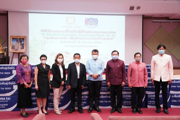 นายสุทธิพงษ์ จุลเจริญ อธิบดีกรมการพัฒนาชุมชน กล่าวว่า วันนี้ต้องขอขอบคุณต่อผู้บริหารของบริษัทเจียไต๋เป็นอย่างยิ่งที่ได้ตระหนักถึงภาวะความลำบากของประชาชนในสถานการณ์แพร่ระบาดของโรคโควิด-19 โดยมอบเมล็ดพันธุ์พืชผักหลาหลายชนิดให้กรมการพัฒนาชุมชนถึง 500,000 ซอง นับว่าเป็นจำนวนมาก ซึ่งกรมการพัฒนาชุมชนให้ความมั่นใจว่าจะกระจายเมล็ดพันธุ์เหล่านี้ไปถึงมือประชาชนภายในหนึ่งสัปดาห์ โดยเฉลี่ยไปตามสภาพพื้นที่และความจำเป็นของประชาชน เช่น ในพื้นที่ห่างไกลก็จะจัดสรรให้ได้ทุกครัวเรือน ส่วนในเขตเมืองก็ลดลงตามสภาพ ทั้งนี้เพื่อช่วยให้ประชาชนที่ต้องถูกมาตรการควบคุมการแพร่ระบาดของโรคโควิดจนทำให้ไม่สะดวกที่จะออกไปไหนมาไหนได้ ถูกจำกัดต้องใช้ชีวิตอยู่ในบ้านเป็นหลัก ได้ใช้โอกาสนี้ปลูกผักสวนครัว สำหรับเป็นอาหารบริโภคในครัวเรือน