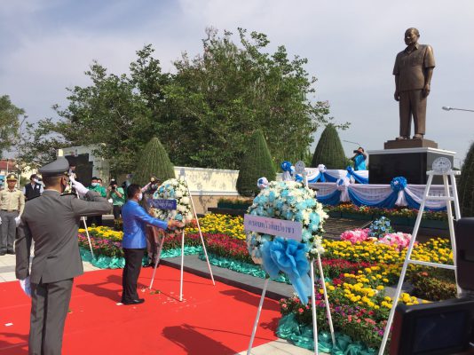 นายนิมิต วันไชยธนวงศ์ ผู้ว่าราชการจังหวัดสุพรรณบุรี องค์กรปกครองส่วนท้องถิ่น ข้าราชการ และประชาชน ร่วมในพิธีวางพวงดอกไม้ อนุสาวรีย์ นายบรรหาร ศิลปอาชา นายกรัฐมนตรีคนที่ 21 เนื่องในวันคล้ายวันอนิจกรรม
