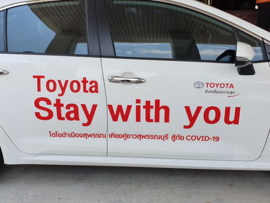 การรับมอบในครั้งนี้ บริษัท โตโยต้า มอเตอร์ ประเทศไทย จำกัด ได้สนับสนุนรถยนต์ใหม่ จำนวน 250 คันและข้าวสาร จำนวน 77 ตัน ให้กับกระทรวงมหาดไทยยืมใช้ในภารกิจที่เกี่ยวข้องกับการแก้ไขสถานการณ์ต่าง ๆ จากการระบาดของโรคติดเชื้อไวรัส COVID-19 โดยกระทรวงมหาดไทยได้พิจารณาจัดสรรข้าวสารให้จังหวัดละ 1 ตัน และรถยนต์ให้ทุกจังหวัด จังหวัดละ 2 คัน พร้อมทั้งได้พิจารณาจัดสรรเพิ่มเติมตามองค์ประกอบ คือให้จังหวัดที่มีพื้นที่ขนาดใหญ่ (จังหวัดที่มีอำเภอ จำนวน 15 อำเภอขึ้นไป) เพิ่มอีกจังหวัดละ 1 คัน , ให้จังหวัดที่มีสถานการณ์การระบาดรุนแรง เพิ่มอีกจังหวัดละ 1 คัน และจังหวัดที่มีจุดผ่านแดนถาวรทางบก เพิ่มอีกจังหวัดละ 1 คัน