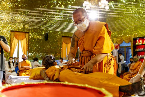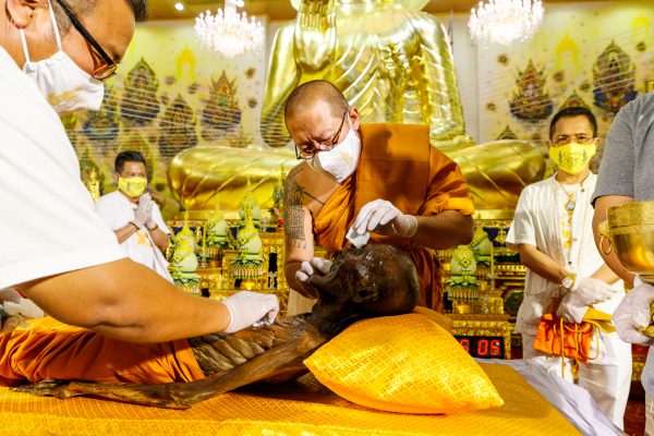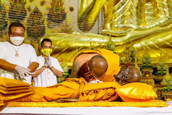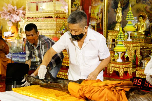 วัดไผ่ล้อมสรงน้ำ เช็ดตัว เปลี่ยนผ้าครอง สังขารหลวงพ่อพูลไม่เน่าเปื่อย ผิวสีทองอร่าม เส้นผม และเล็บ ยาวขึ้นทุกปี อย่างน่าอัศจรรย์