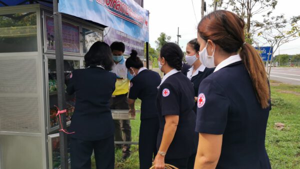 สมาชิกเหล่ากาชาดจังหวัดตรัง ตั้ง “ตู้วิเศษเหล่ากาชาด” แบ่งปันเครื่องอุปโภคบริโภคให้แก่ผู้ได้รับผลกระทบโควิด-19